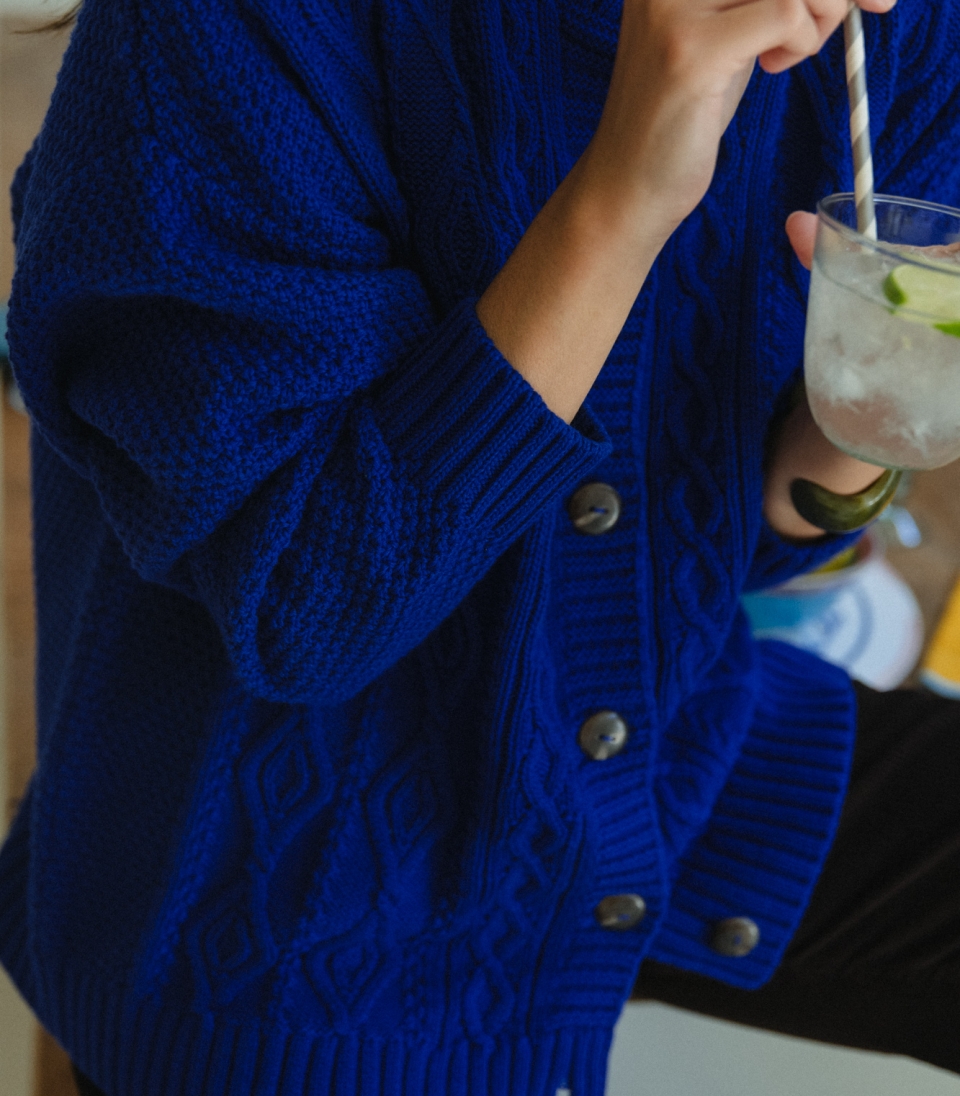The brand celebrates the value of small things, «slow cooked». Beautiful designs, light patterns and timeless style. Knits made to be enjoyed, lived in, and held onto for a long time.