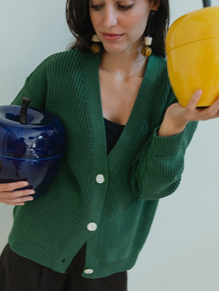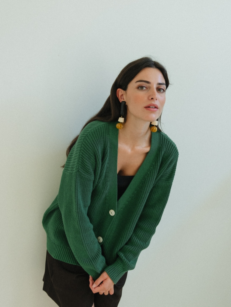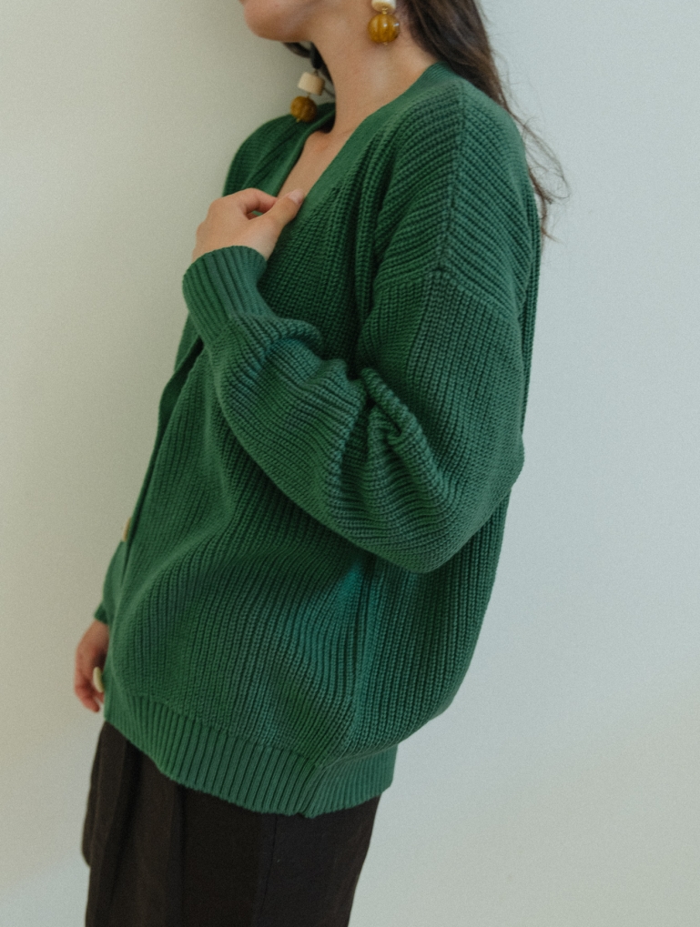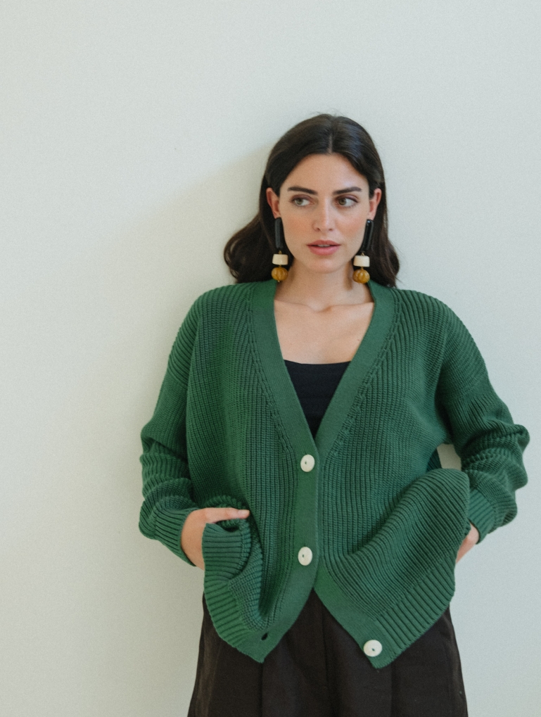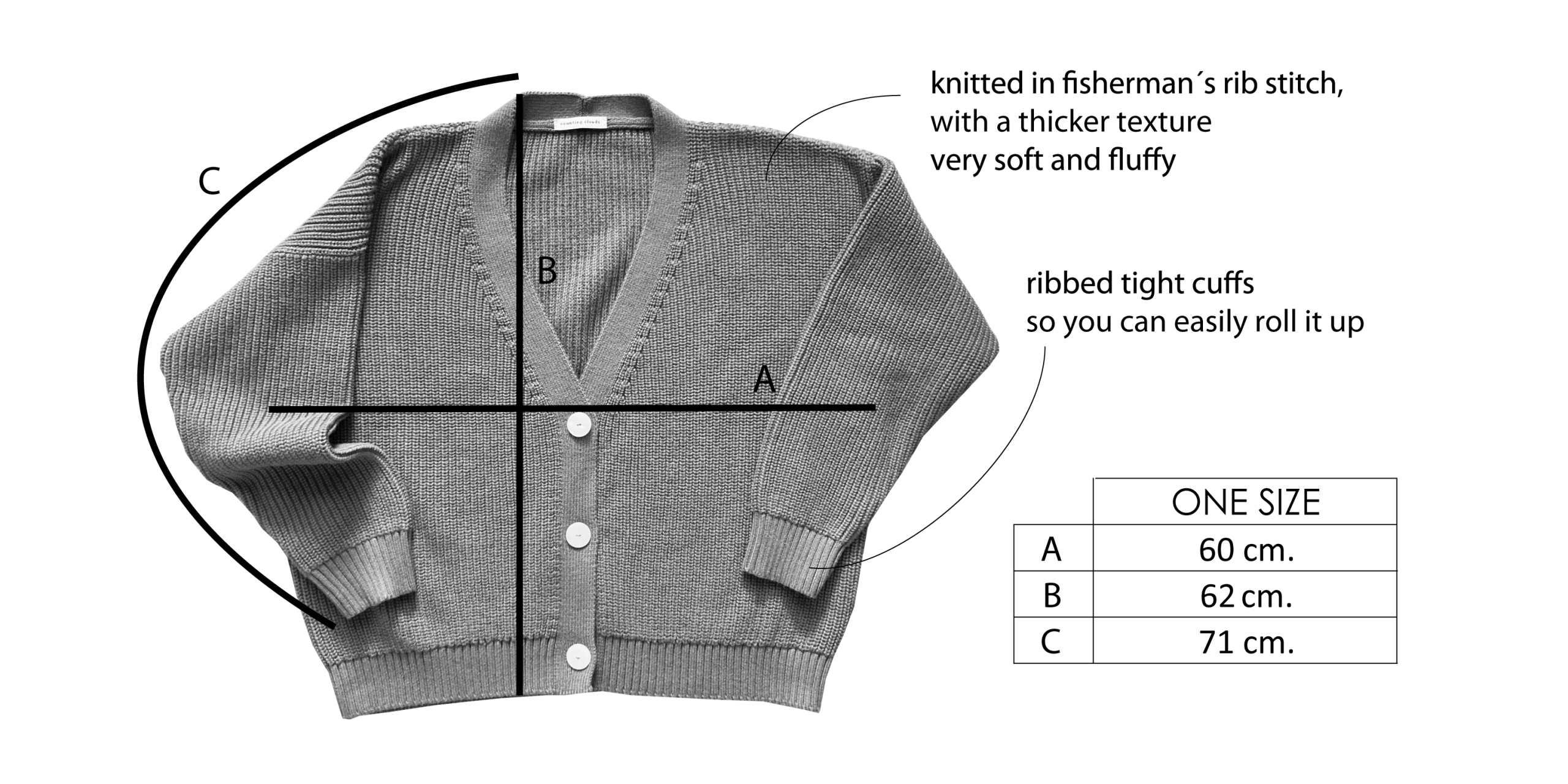 A fisherman rib cardigan, with a perfect pattern for different bodies. So stylish with the sleeves rolled up, opened or closed, it will become that knit that goes with you all year round.