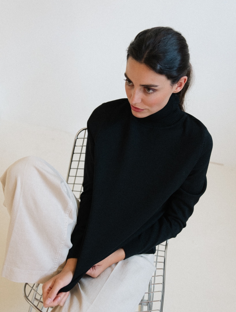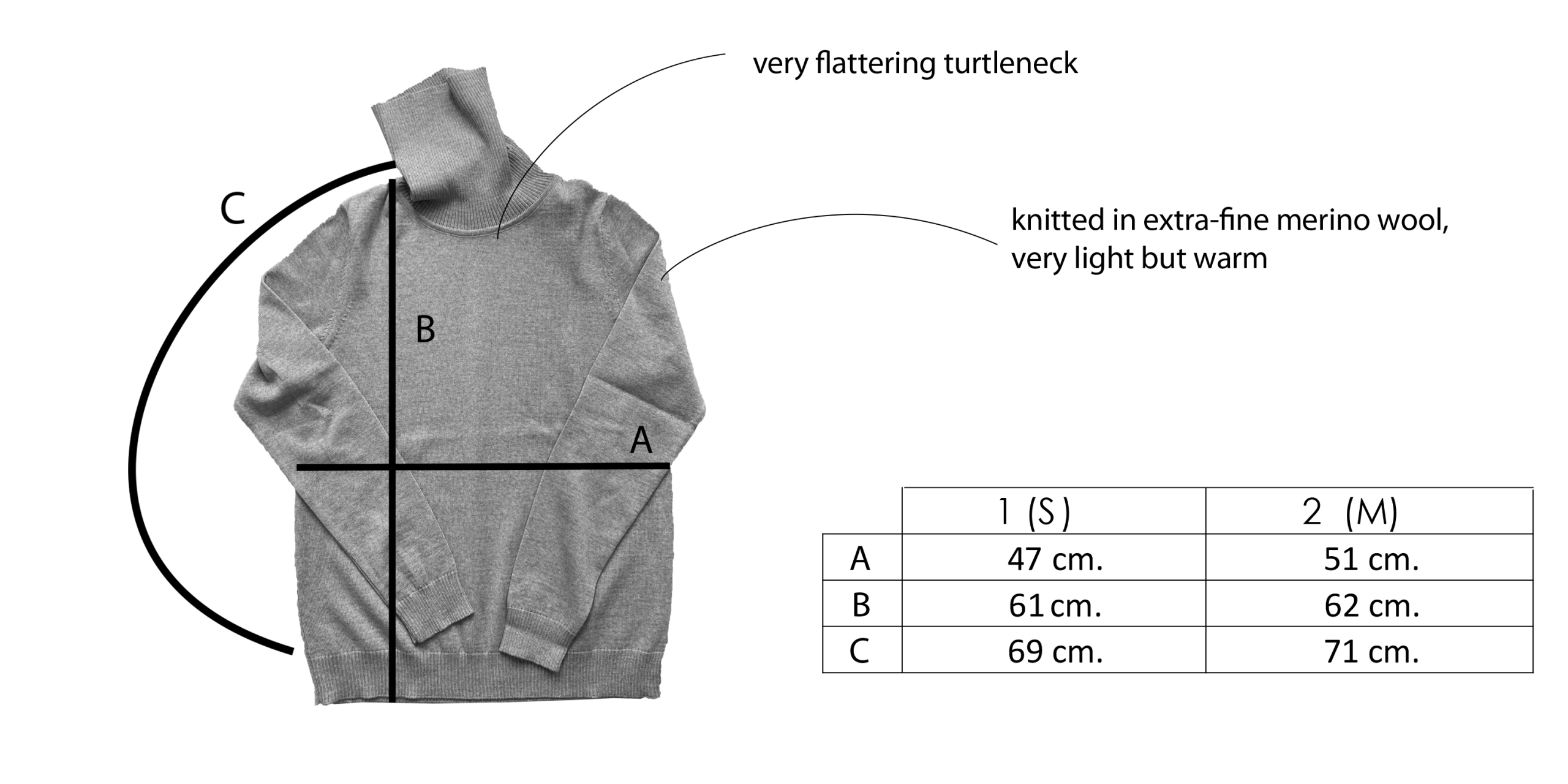 A thin and stylish jumper, it´s perfect for a chic and delicate touch to your everyday look. With a flattering turtleneck, merino wool in this thickness is light and warm at the same time. A knit designed for a tighter look, this time with a pattern tailored for petite sizes.