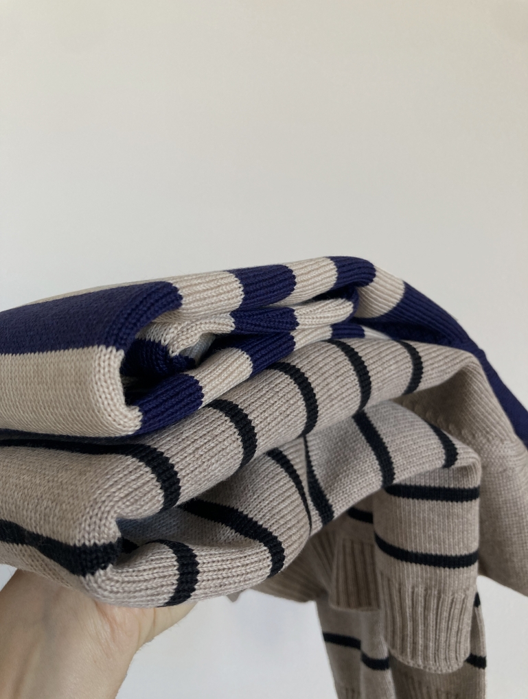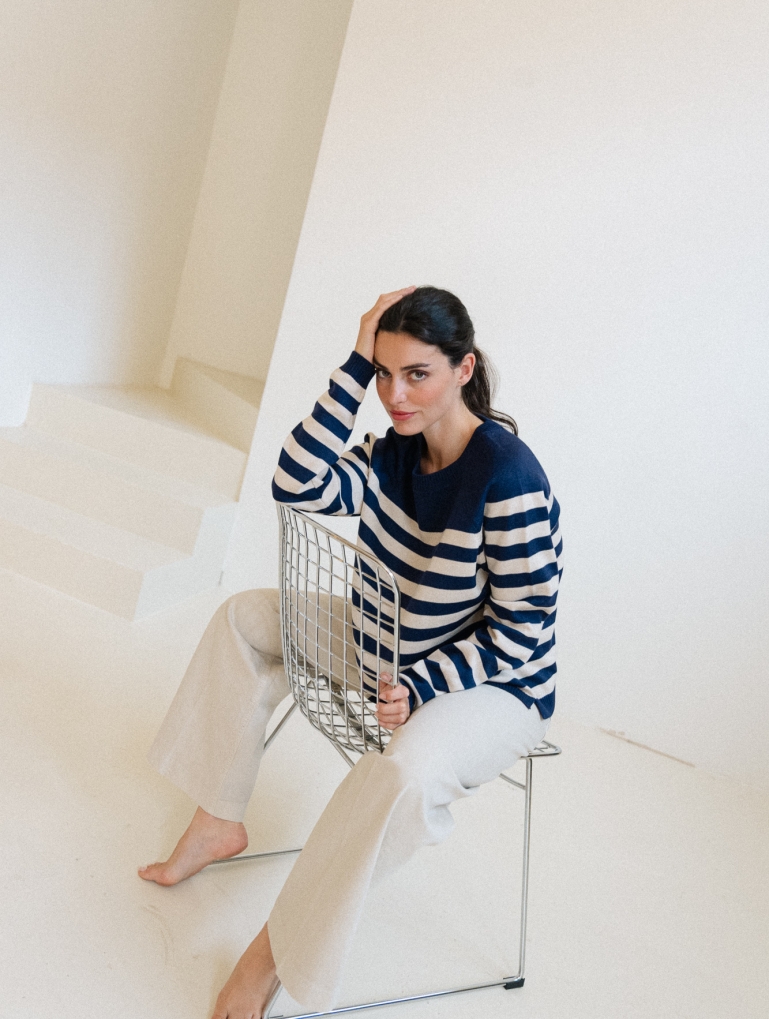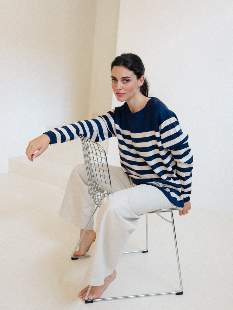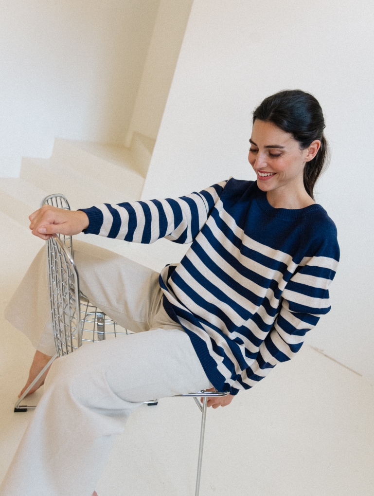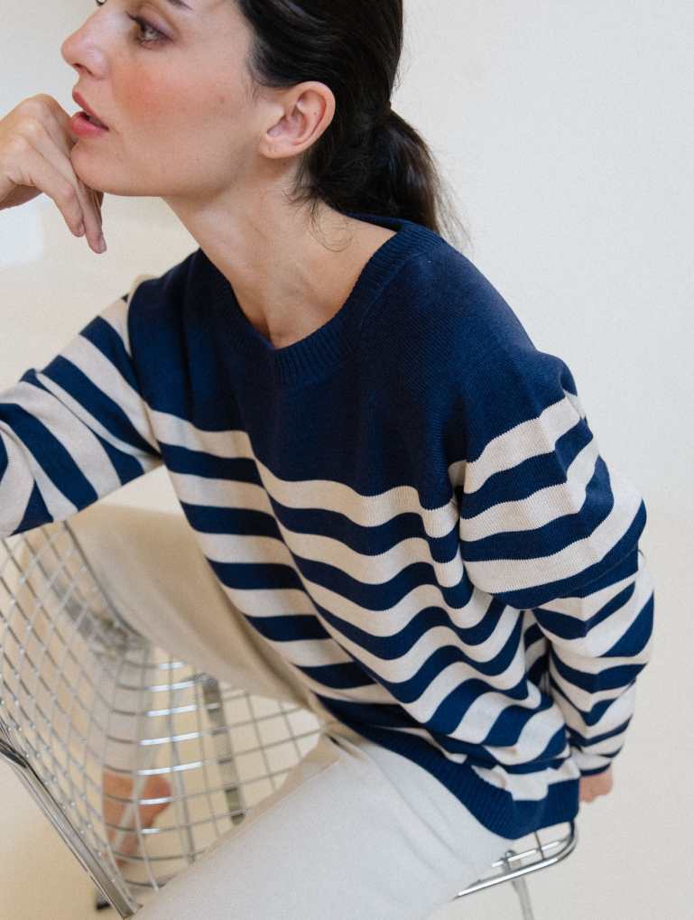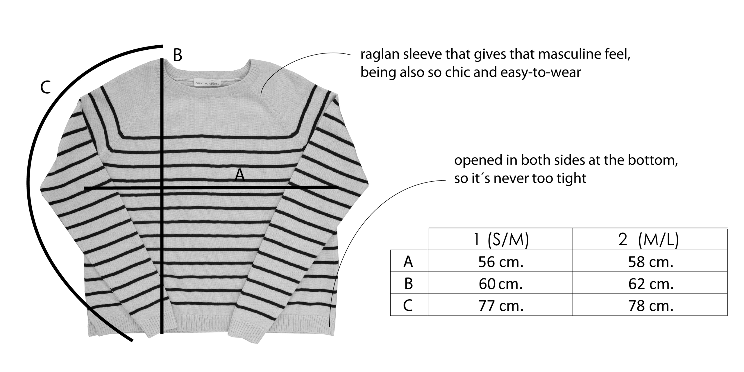 A basic stripes jumper to combine in a million ways that is always a favourite year after year. Its ranglan sleeve pattern makes it perfect for different bodies and shapes.