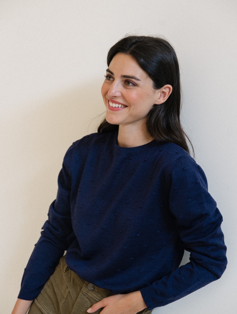You can find the measures of this knit in the MEASURES tab. Rita is 170 cm. and she is wearing Size 1 (S/M) in the photos . If you have any doubts, you can contact us at info@countingclouds.es and I will be happy to help you.