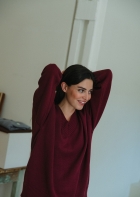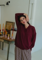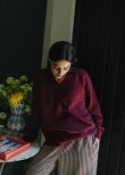 The perfect V-neck jumper. Straight, oversized cut, with a loose pattern that fits wonderfully. Comfortable and stylish, its extra-wide neckline gives it a unique and chic touch.