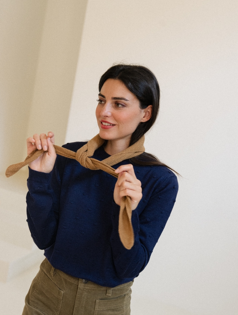 Un accesorio ideal para elevar cualquier look. Una hilatura suave de algodón orgánico y cashmere, tejida en un punto de arroz muy fino. Una vez que lo pruebes, lo querrás en más colores.