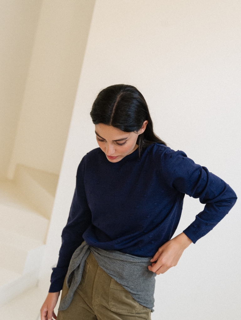 Recomendamos lavar estas prendas de punto mezcla de algodón y cashmere a mano en agua tibia con jabón neutro o champú de niños (puedes añadir un poco de acondicionador de pelo si quieres que queden más suaves). Si quieres lavarlas a máquina, usa solamente agua fría a 0ºC (nunca a 30º) en un programa delicado o de lana, con un centrifugado suave.