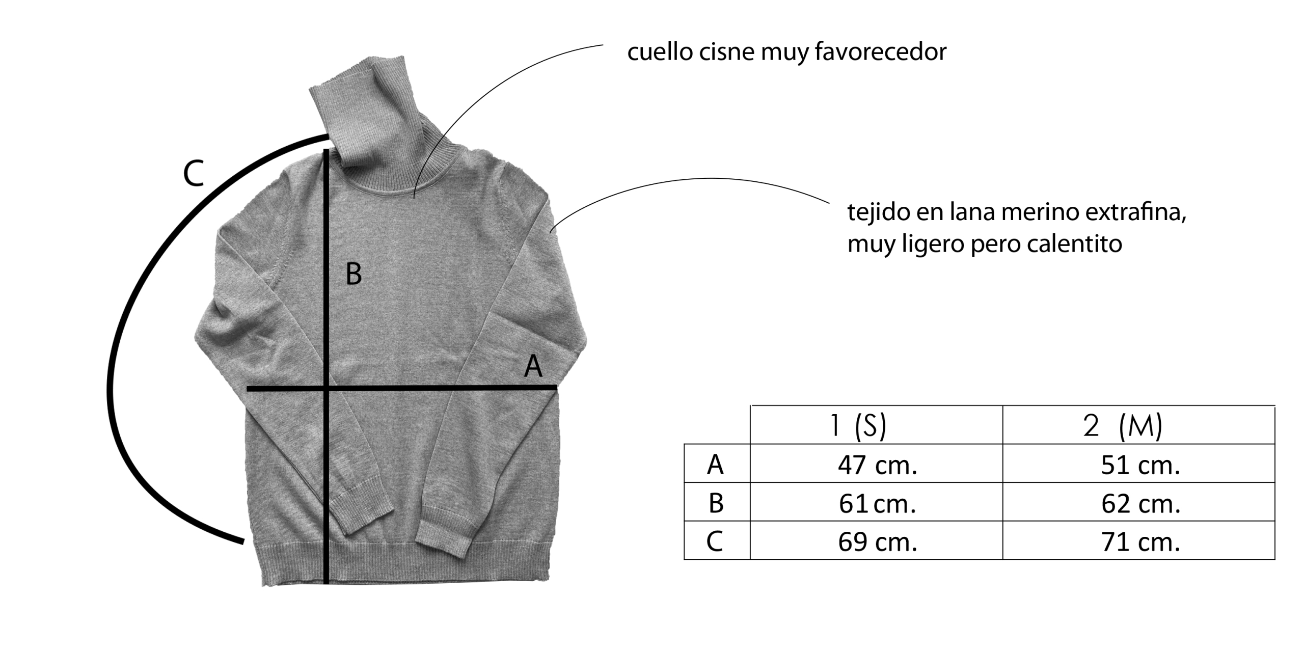 Un jumper finito y estiloso, es perfecto para darle un punto chic y delicado a tu look de todos los días. Su cuello cisne favorece mucho, y la lana merino en este grosor es ligera a la vez que calentita. Una prenda para llevar más pegada al cuerpo y un patrón pensado esta vez para tallas más «petite».
