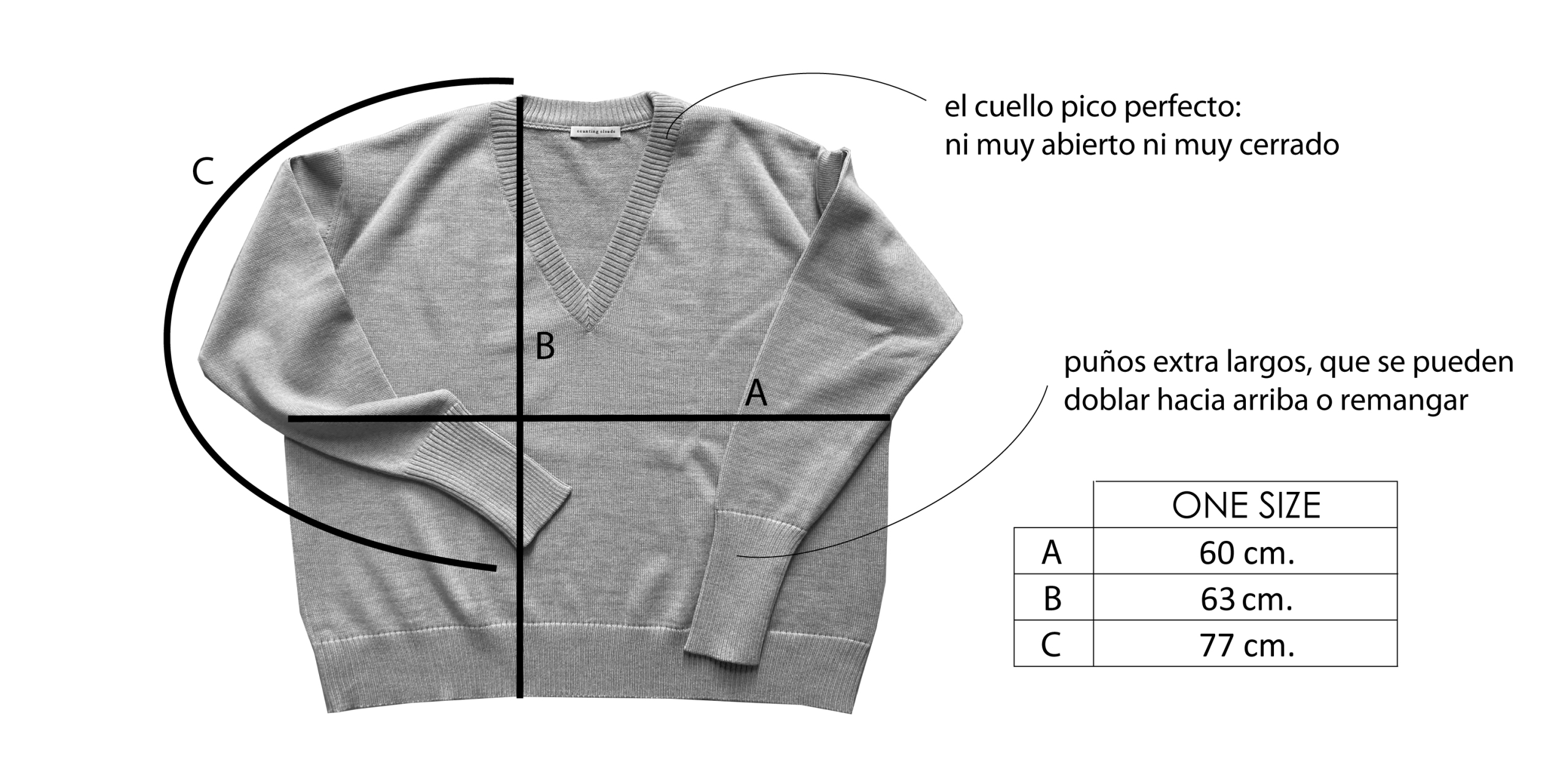 Un patrón oversize, cómodo y estiloso. Unos puños con un elástico extra largo y un escote en pico, que le dan un toque femenino y muy favorecedor.