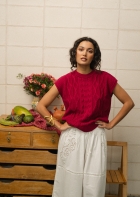 Un chaleco tejido en un algodón muy suave con una textura de trenzas y punto de arroz. Una prenda muy especial en unos colores ideales. Perfecta todo el año, sobre una camisa o camiseta, o sin nada debajo.