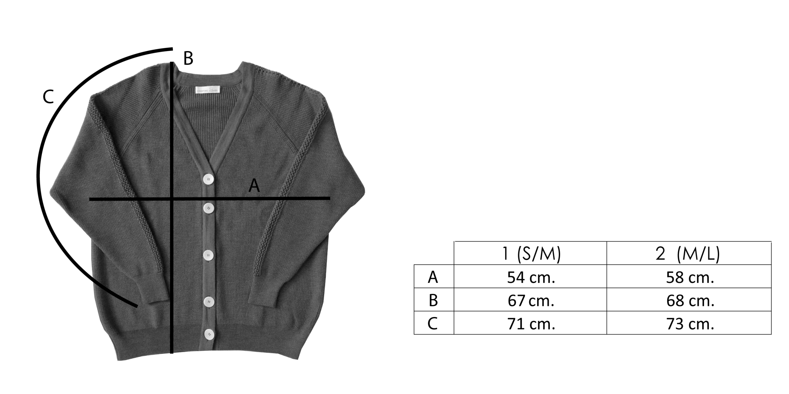En la pestaña MEDIDAS tienes las medidas de la prenda en plano. Julia mide 160 cm. y en las fotos lleva la Talla 2 (M/L). Si tienes cualquier duda, puedes consultarme en info@countingclouds.es y te ayudaré a escoger la talla correcta.