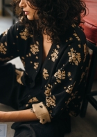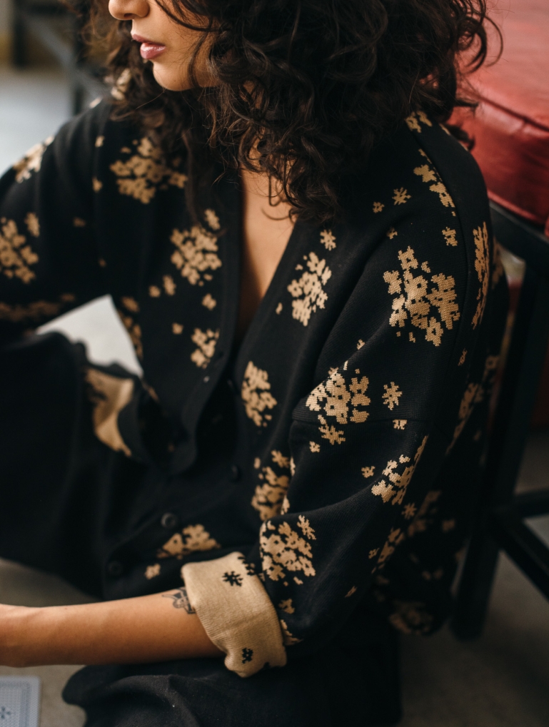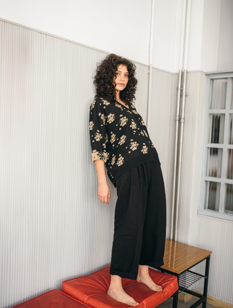 Margot es seguramente la prenda de la que más unidades hemos vendido en estos años en Counting Clouds. Un patrón precioso que siempre os encanta, súper favorecedor y muy especial. Queda genial con los puños remangados, y es perfecto como prenda exterior en otoño. Un patrón en lana merino, calentito pero a la vez súper ligero y con movimiento. Con botones negros de corozo natural.